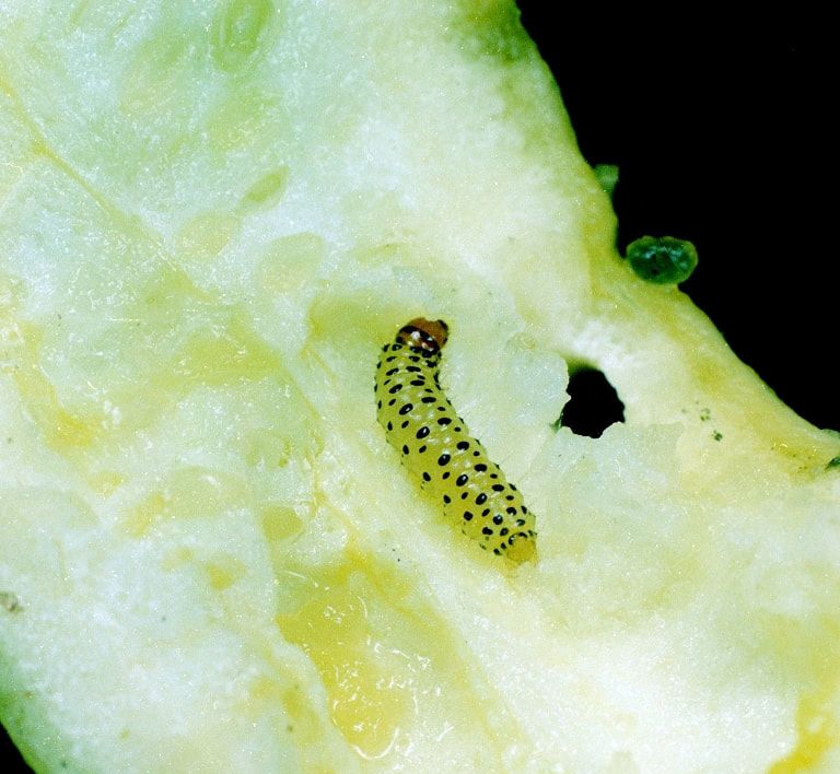 Damage to crops caused by the pickleworm can be observed by the lack of flowers and new leaves on the plant. These are the first parts of the plant to be eaten. Damaged vines and leaves can become riddled with holes and cease to continue growing. Pickleworm larvae also eat the fruit, and have been known to burrow deep into the flesh leaving a trail of white frass in their wake. Yuck! Once these pests are able to burrow into the fruit, the damage done usually results in rotting.